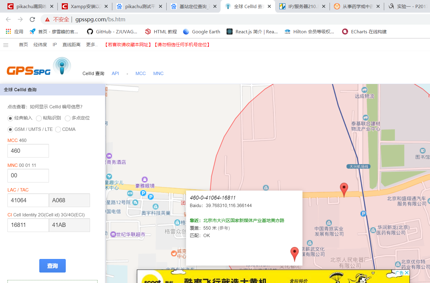 在一个案件中,获取了犯罪嫌疑人的LAC是41064,CID是16811,这个人可能在什么地方?(附截图)