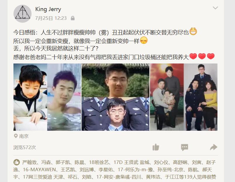 说说中多次出现南京市与淮安市,最后由其所读高中与家庭住址确定为淮安生源。