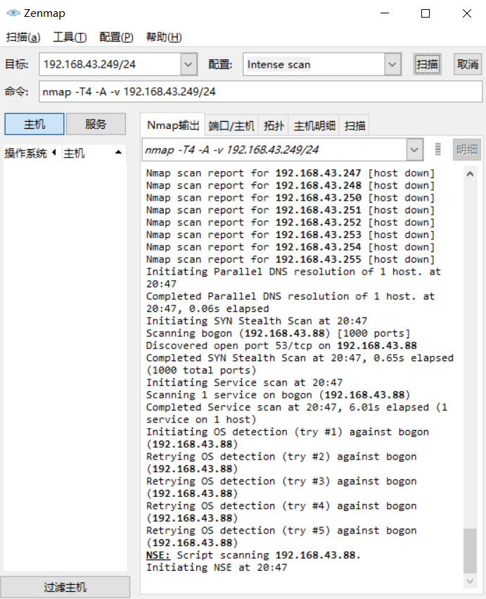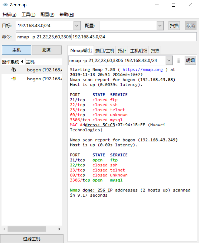 选择一个存活IP地,扫描所开放的端口(分别用ping扫描,syn扫描尝试),并查询常用端口所对应的服务及操作系统信息。