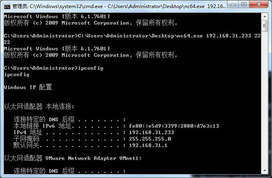 nc.exe -l -p port -e cmd.exe 进入监听模式