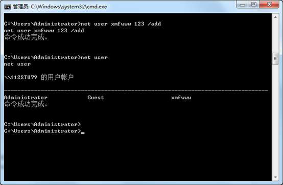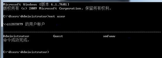 在shell中,利用net user 用户名 密码 /add ,添加一个用户,并在受害者的机器中使用 net user 命令进行验证。(需要截图)