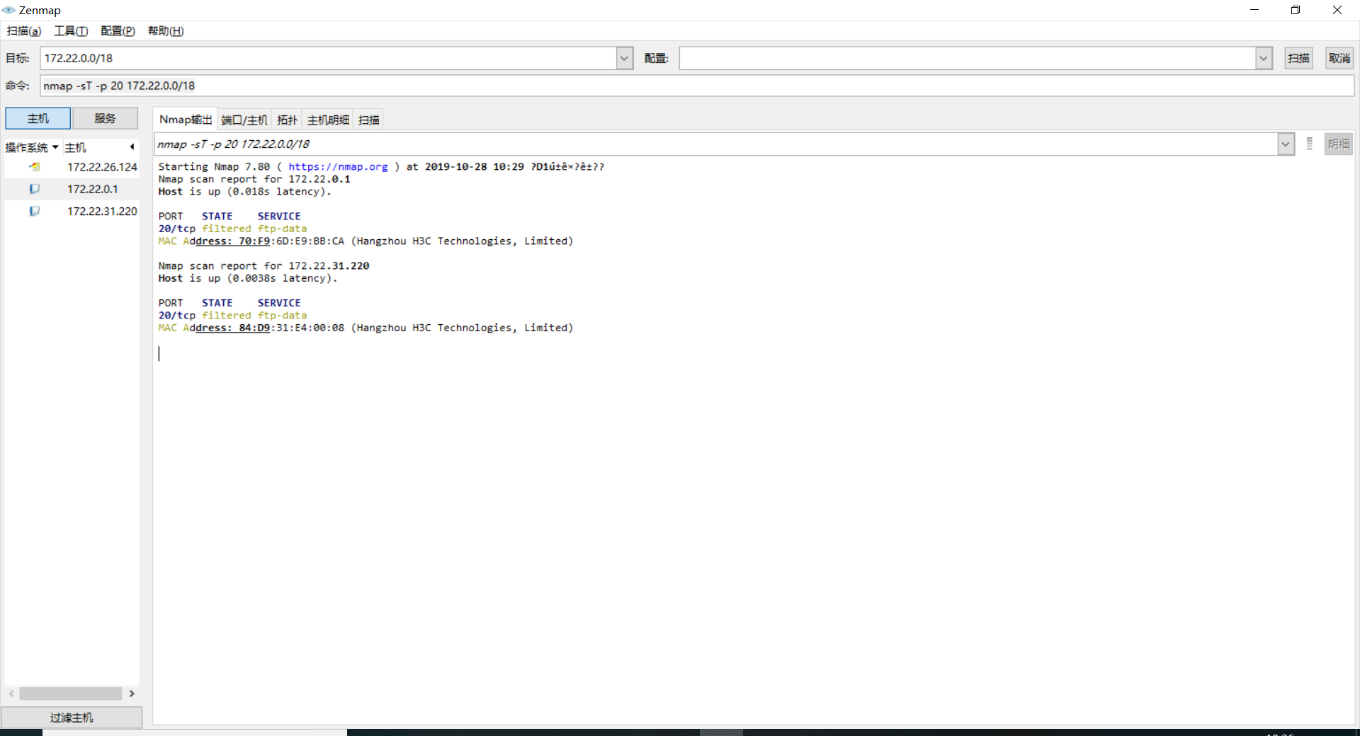 在实验楼上网的局域网内,某一台机器上安装了ftp服务器,请扫描出来,并附截图证明。