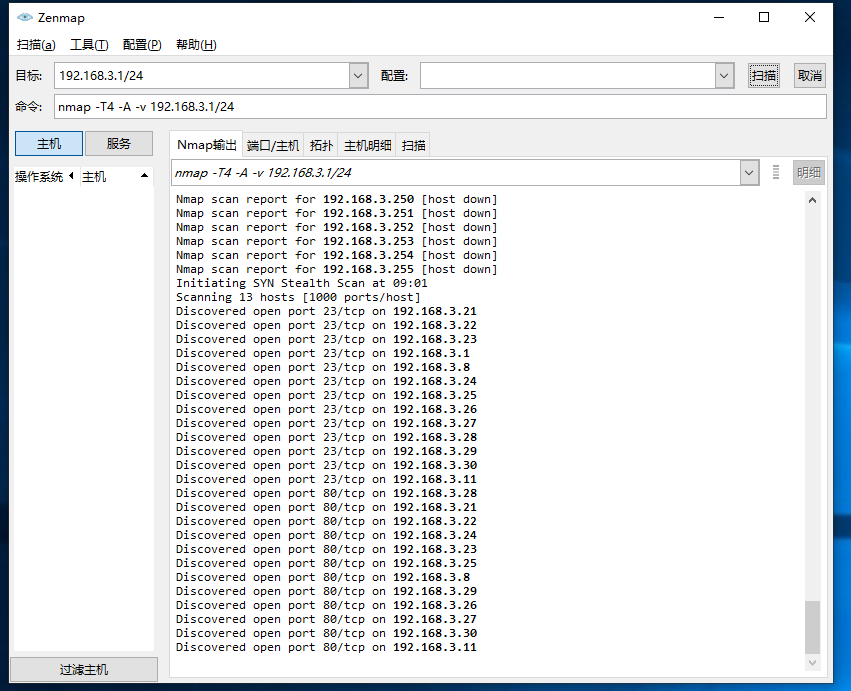 请查询本机的IP地址和子网掩码,并在局域网中扫描本网段内的所有存活主机(附搜索截图)