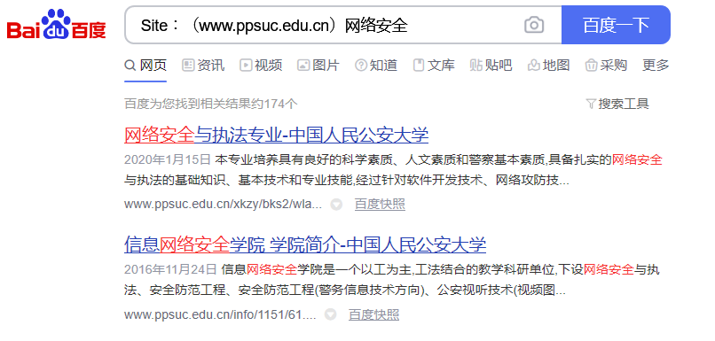 用百度或google搜索www.ppsuc.edu.cn中所有包含“网络安全”的网页。(附截图)
