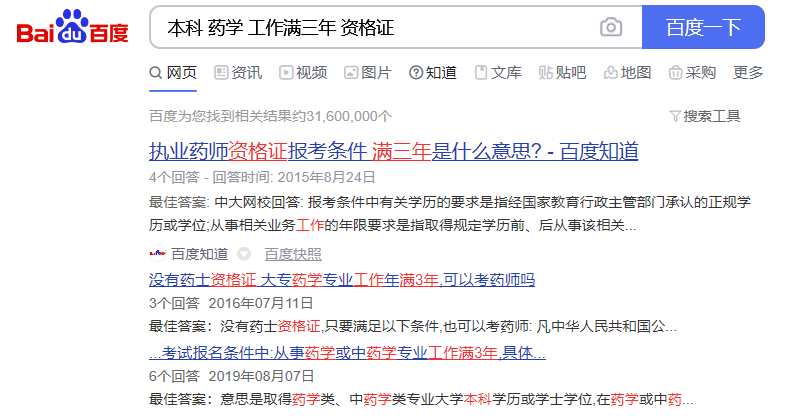 小丽是药学专业的一名本科生,现已从事药学专业的工作,目前她想考取一个资格证,但是报名条件中要求其工作满三年。那么,小丽想考取的是什么证。(请回答并附截图证明。)
