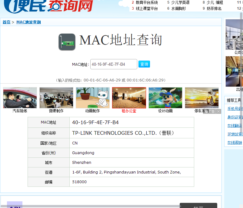 在一个案件中,获取了犯罪嫌疑人的一个MAC地址:40-16-9F-4E-7F-B4,请查询该MAC地址对应的厂商是(附截图)