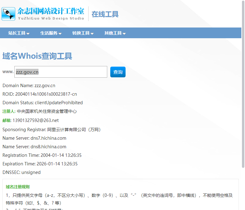 获取www.zzz.gov.cn域名注册时,注册人的邮箱是(附截图)