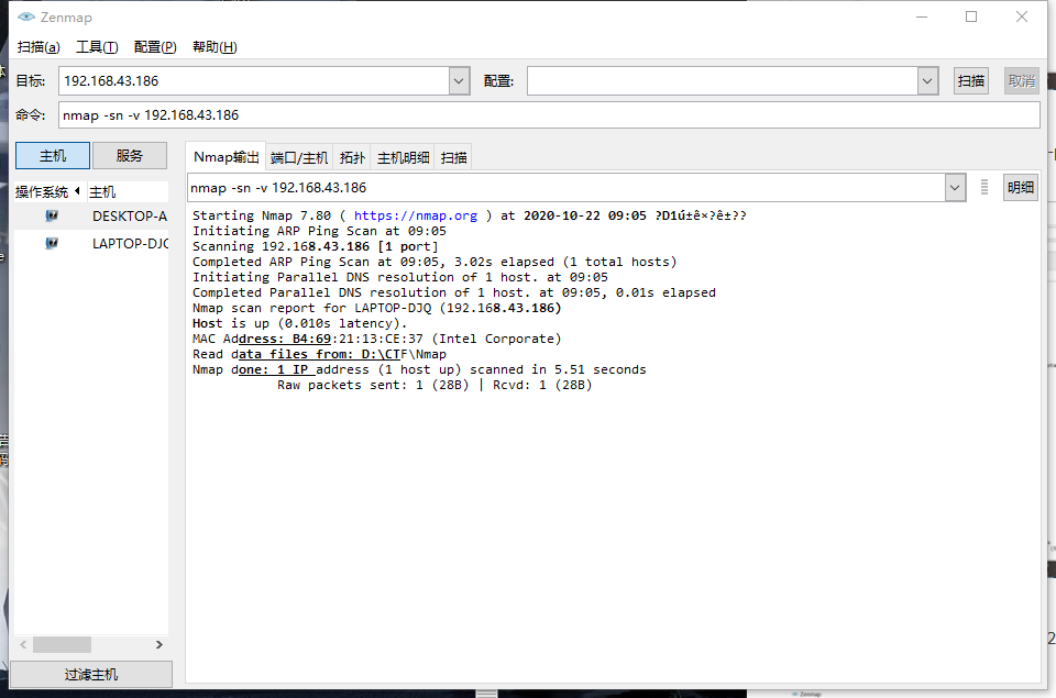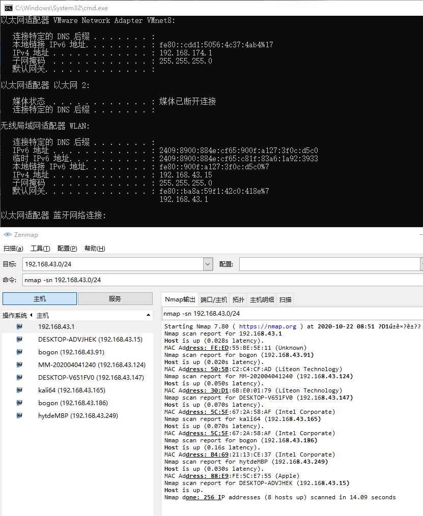 请查询本机的IP地址和子网掩码,并在局域网中扫描本网段内的所有存活主机(附截图)
