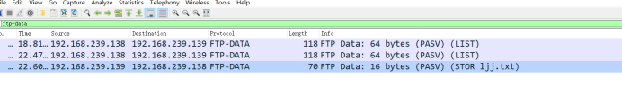 由于A将B的网关的mac地址改为了他自己的地址,因此B往外面发出的数据包都会经过A,因此即使不用FTP关键词来搜索数据包,也可以使用ip.src==192.168.226.128来截获B发出的数据包