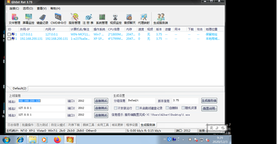 在控制端中查看木马上线情况,并对以下功能每个进行测试和截图。 【部分功能可能会无效,可以不用截图】