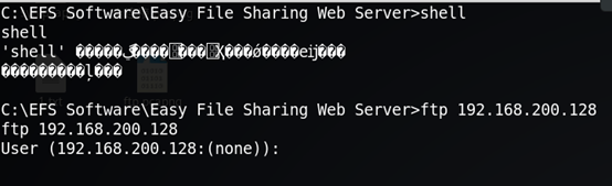 4.用被控机器的shell登录B机器的ftp,下载并执行木马。查看木马上线。