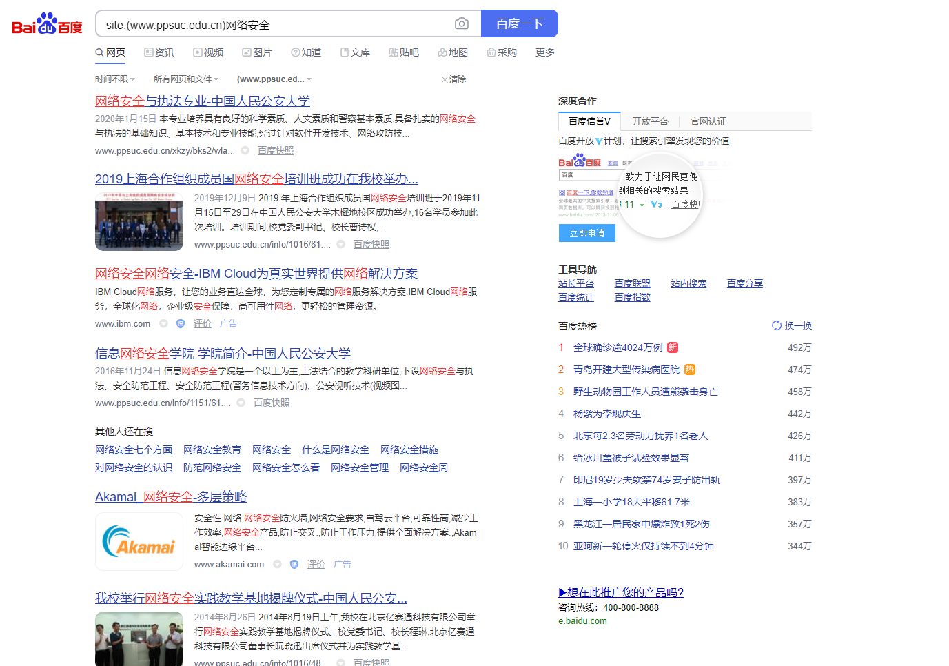 用百度或google搜索www.ppsuc.edu.cn中所有包含“网络安全”的网页。(附截图)