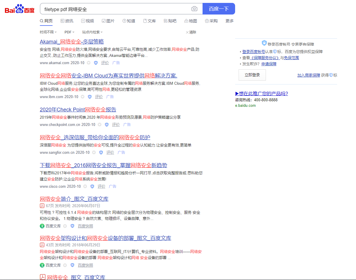 用百度或google搜索所有包含“网络安全”的pdf文档(附截图)