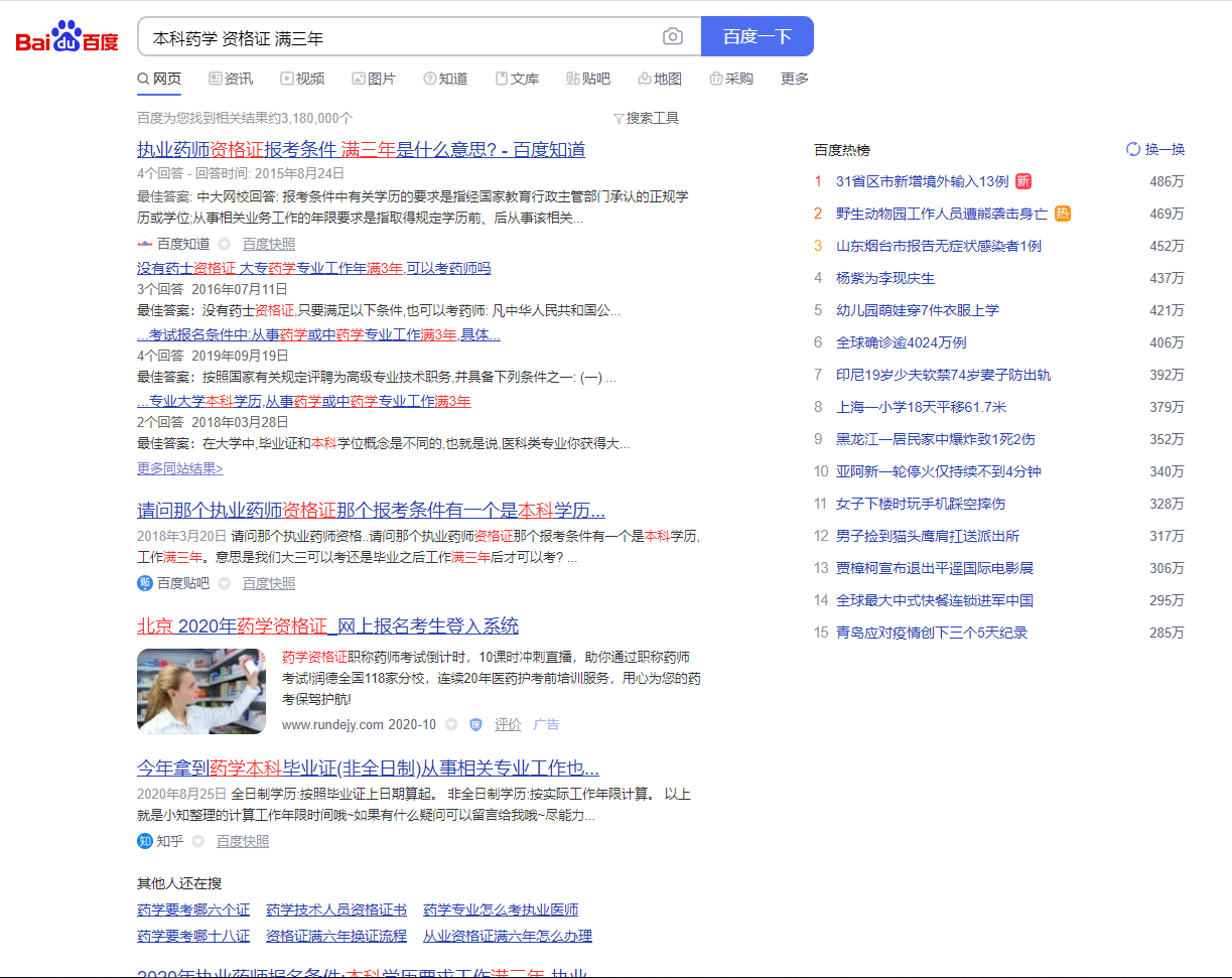 小丽是药学专业的一名本科生,现已从事药学专业的工作,目前她想考取一个资格证,但是报名条件中要求其工作满三年。那么,小丽想考取的是什么证。(请回答并附截图证明。)