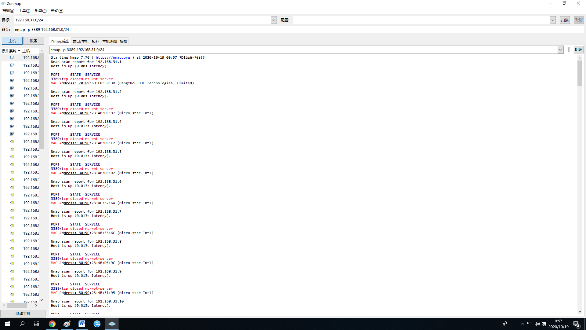 在实验楼上网的局域网内,请扫描出来,哪些机器开启了ftp服务,哪些机器开启了远程桌面连接服务,并附截图证明。