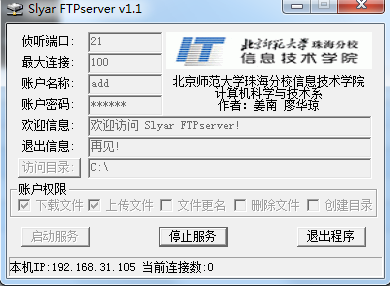 两个同学配合完成,A同学搭建FTP服务器,并新建用户,并设置登陆密码