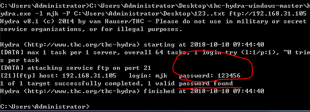 2.B同学使用hydra 对ftp用户的密码进行字典破解。hydra 中有关于该软件的使用命令语法。字典文件需要自己去生成。