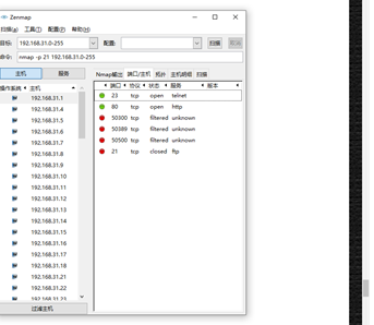 在实验楼上网的局域网内,请扫描出来,哪些机器开启了ftp服务,哪些机器开启了远程桌面连接服务,并附截图证明。