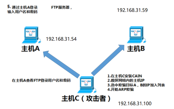 ARP欺骗攻击过程: