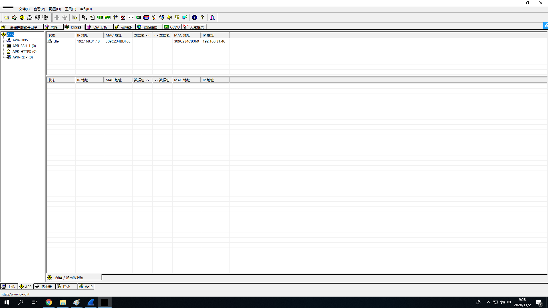 3.软件工具可使用office2003或2007、CAIN、Wireshark等。