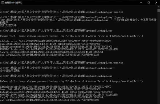 2.使用pwdump软件导出本机的sam文件