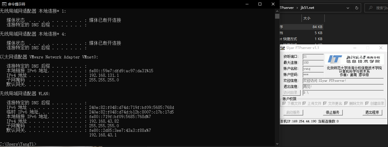 两个同学配合完成,A同学搭建FTP服务器,并新建用户,并设置登陆密码