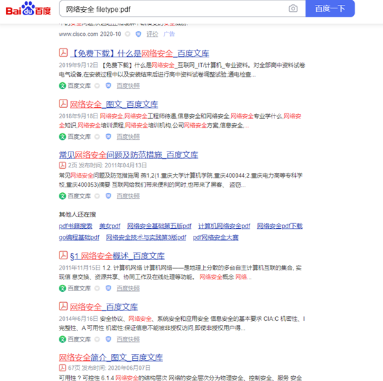 用百度或google搜索所有包含“网络安全”的pdf文档(附截图)