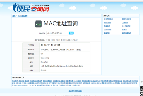 在一个案件中,获取了犯罪嫌疑人的一个MAC地址:40-16-9F-4E-7F-B4,请查询该MAC地址对应的厂商是(附截图)