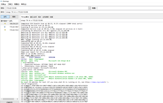 选择一个存活IP地址,扫描所开放的端口(分别用ping扫描,syn扫描尝试和全连接扫描),并查询常用端口所对应的服务及操作系统信息。