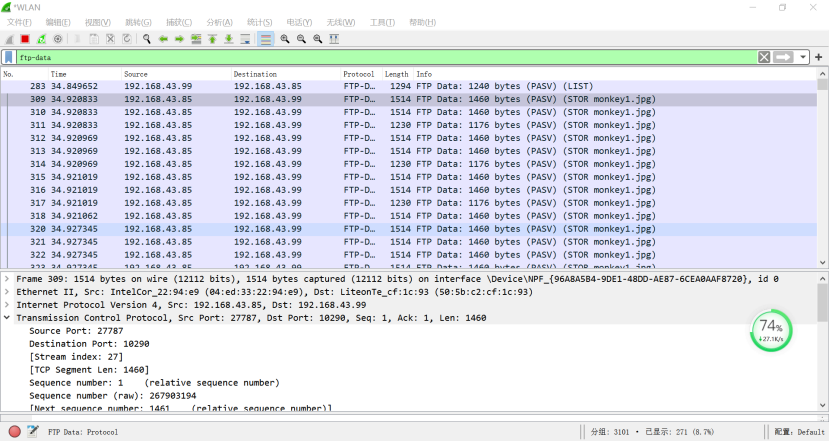 3:在wireshark中捕获FTP包,恢复出上传的图片