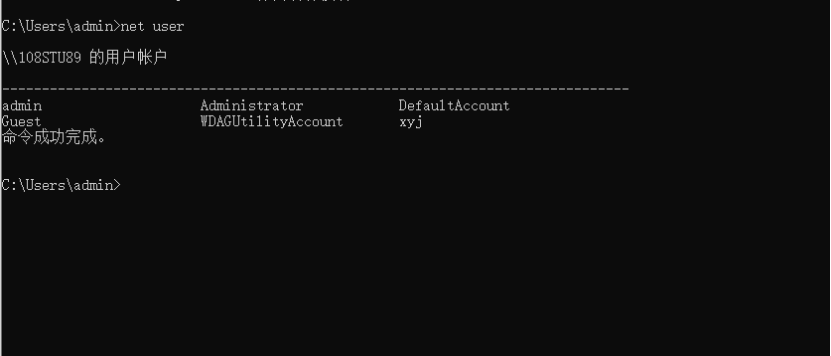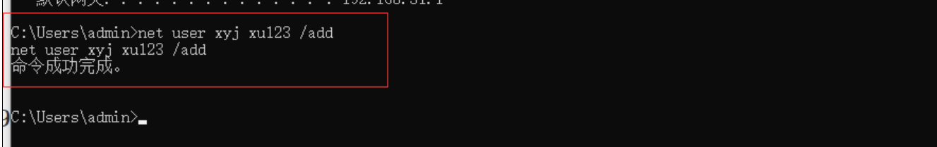 在shell中,利用net user 用户名 密码 /add ,添加一个用户,并在受害者的机器中使用 net user 命令进行验证。(需要截图)