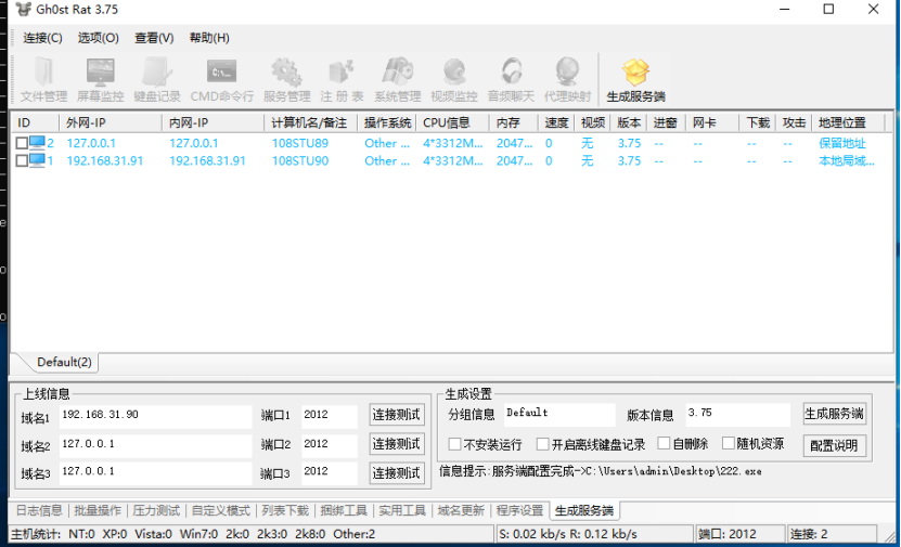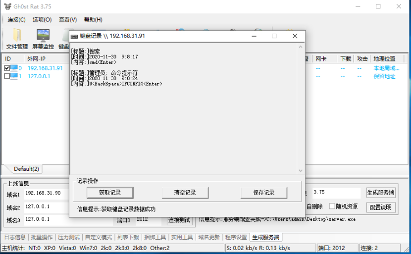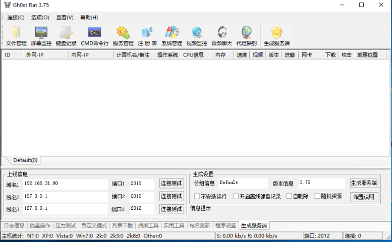 攻击者的IP192.168.31.90,我们使用Ghost Rat 3.75