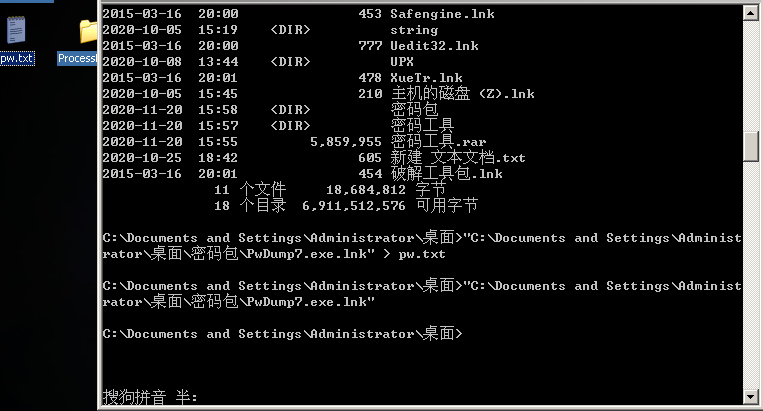 2.使用pwdump软件导出本机的sam文件