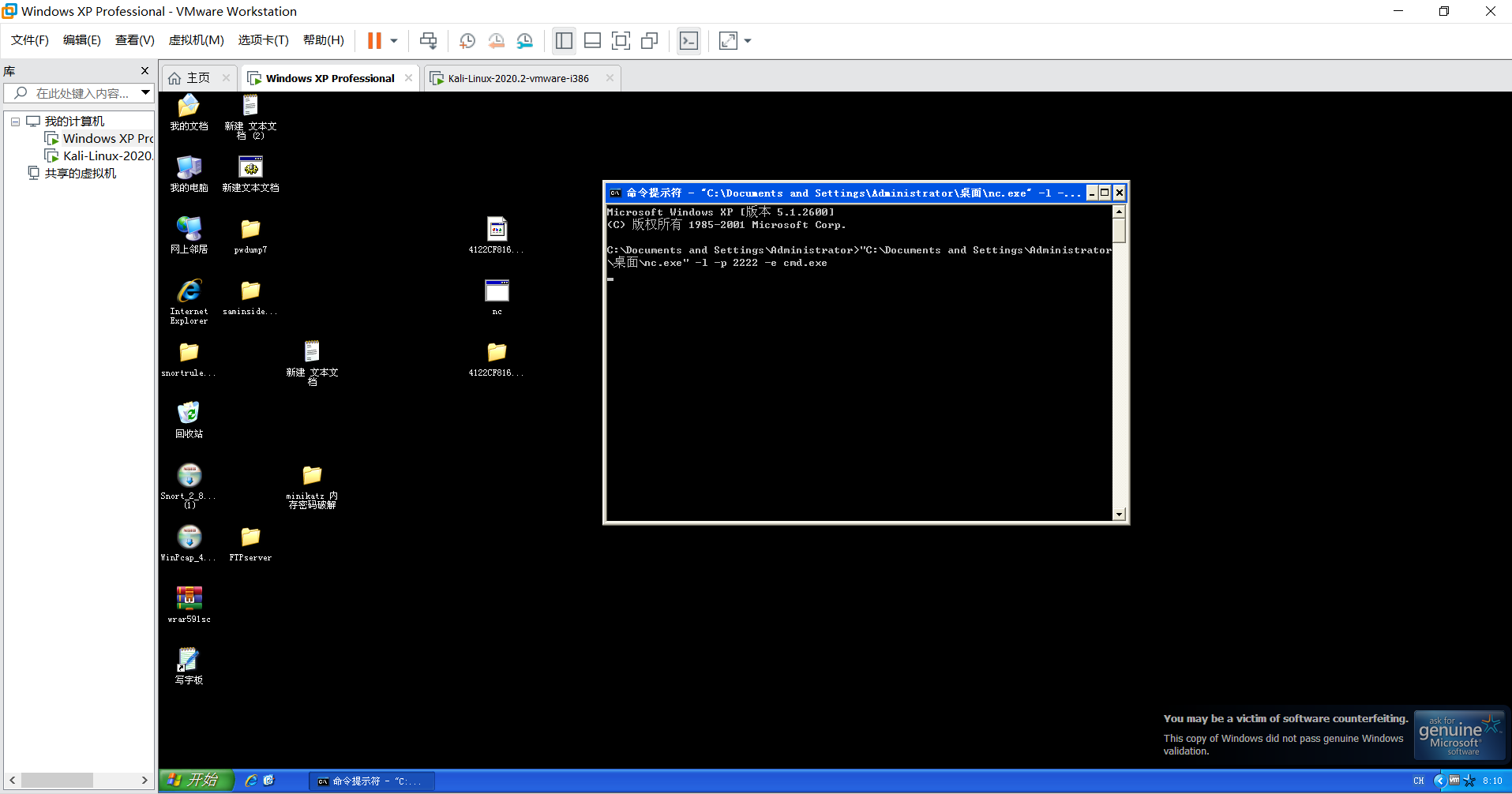 nc.exe -l -p port -e cmd.exe 进入监听模式