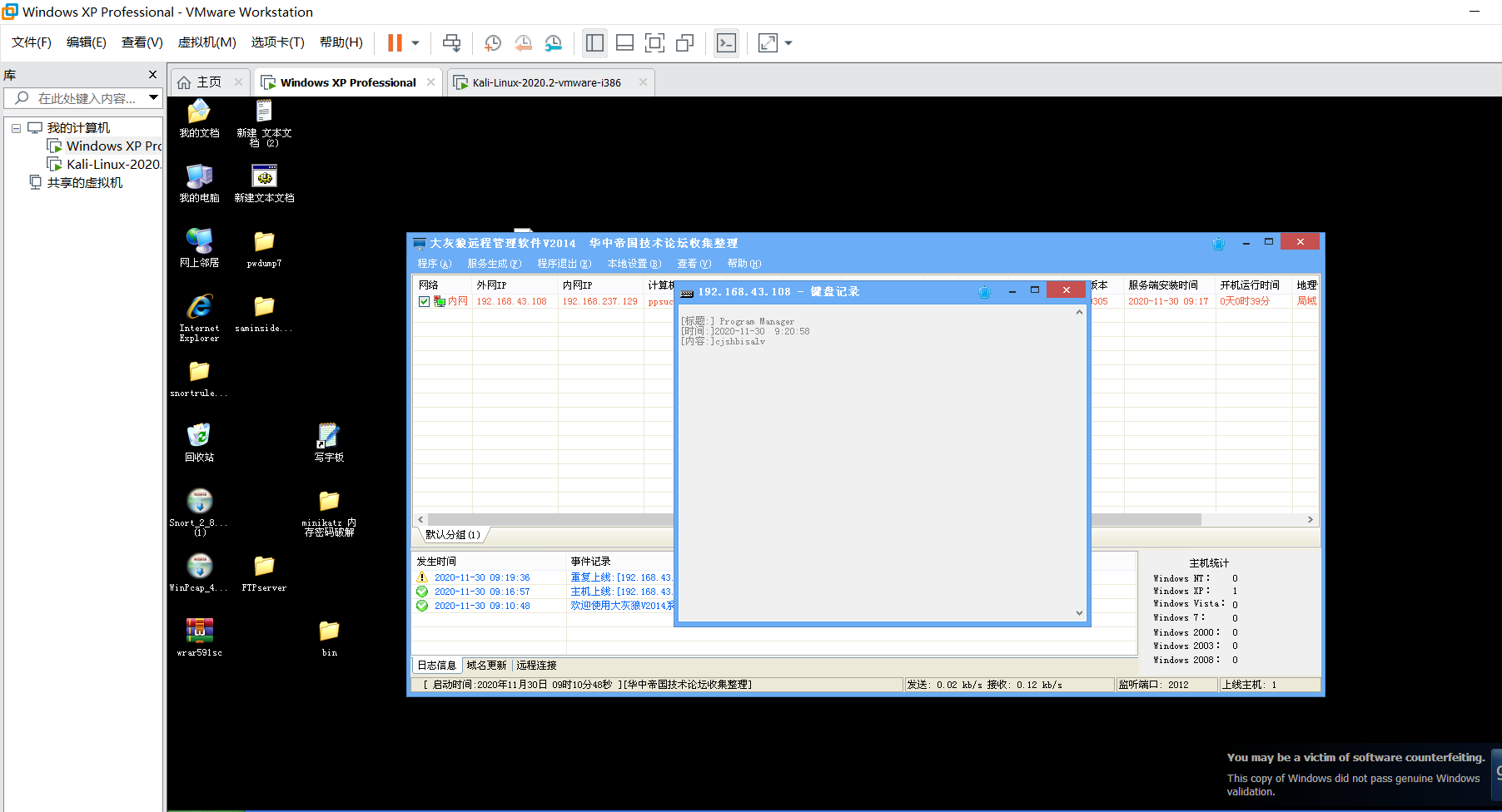 在控制端中查看木马上线情况,并对以下功能每个进行测试和截图。 【部分功能可能会无效,可以不用截图】