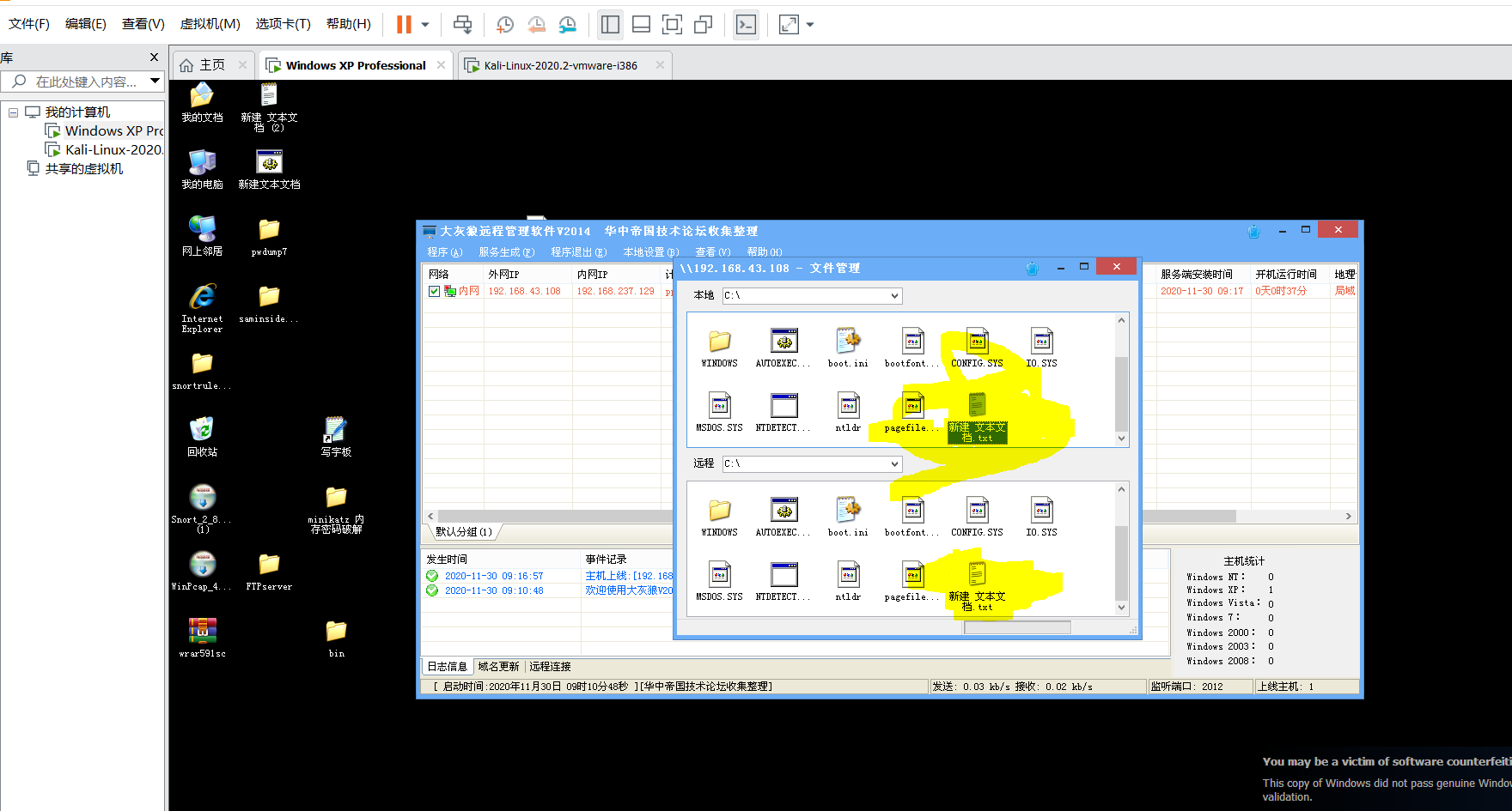 2.在B机器开启木马控制端,生成木马server.exe,并放置在ftp目录下。