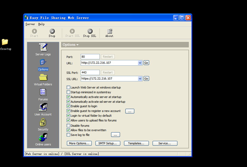 1.在主机A上搭建easyfile,安装文件为efssetup,请见在线学习平台。