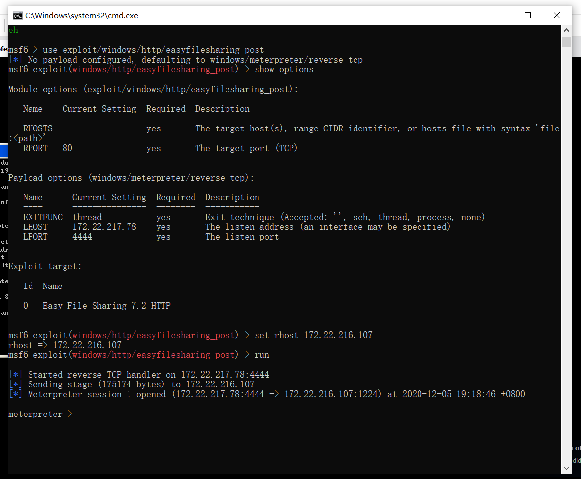 任务四 msf攻击体验