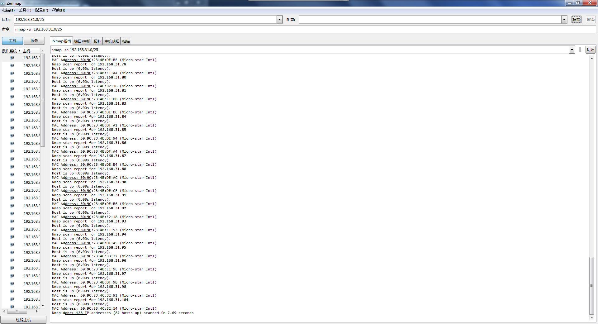 请查询本机的IP地址和子网掩码,并在局域网中扫描本网段内的所有存活主机(附搜索截图)