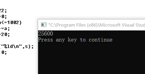 #include <stdio.h> int main(){ int a=22; long s=0; do { s+=a; a+=20; } while(a<=1002); printf("%ld\n",s); return 0; }