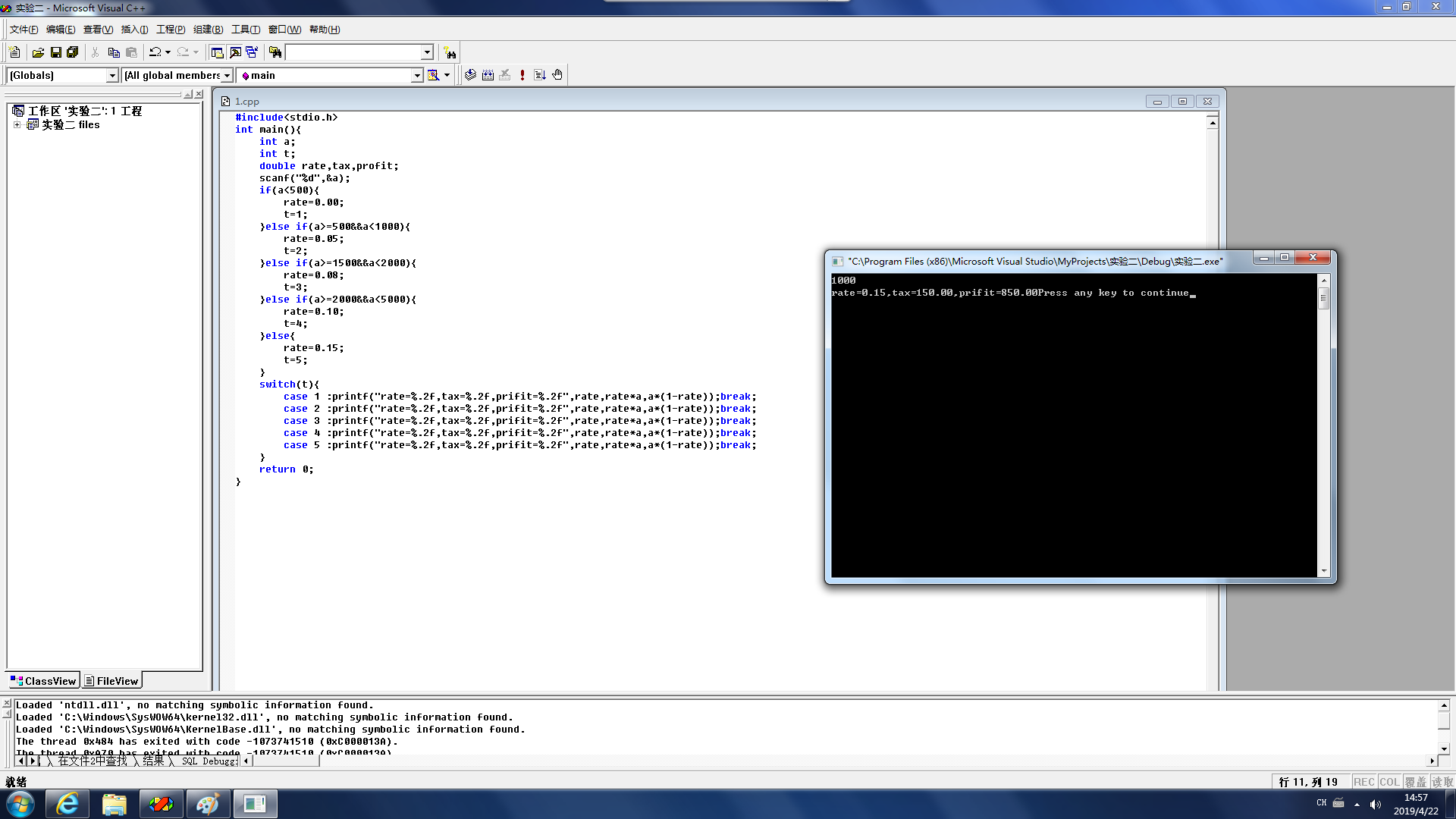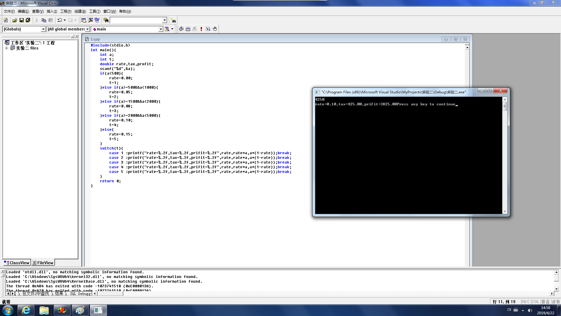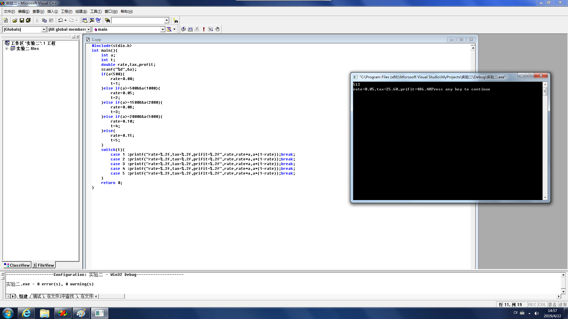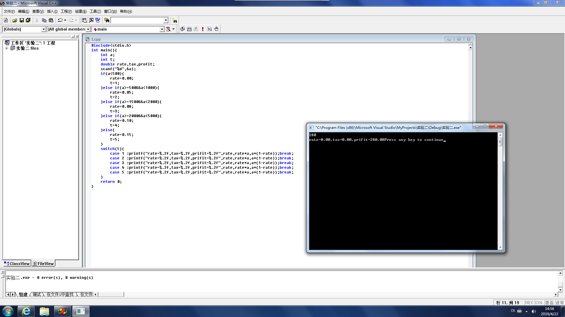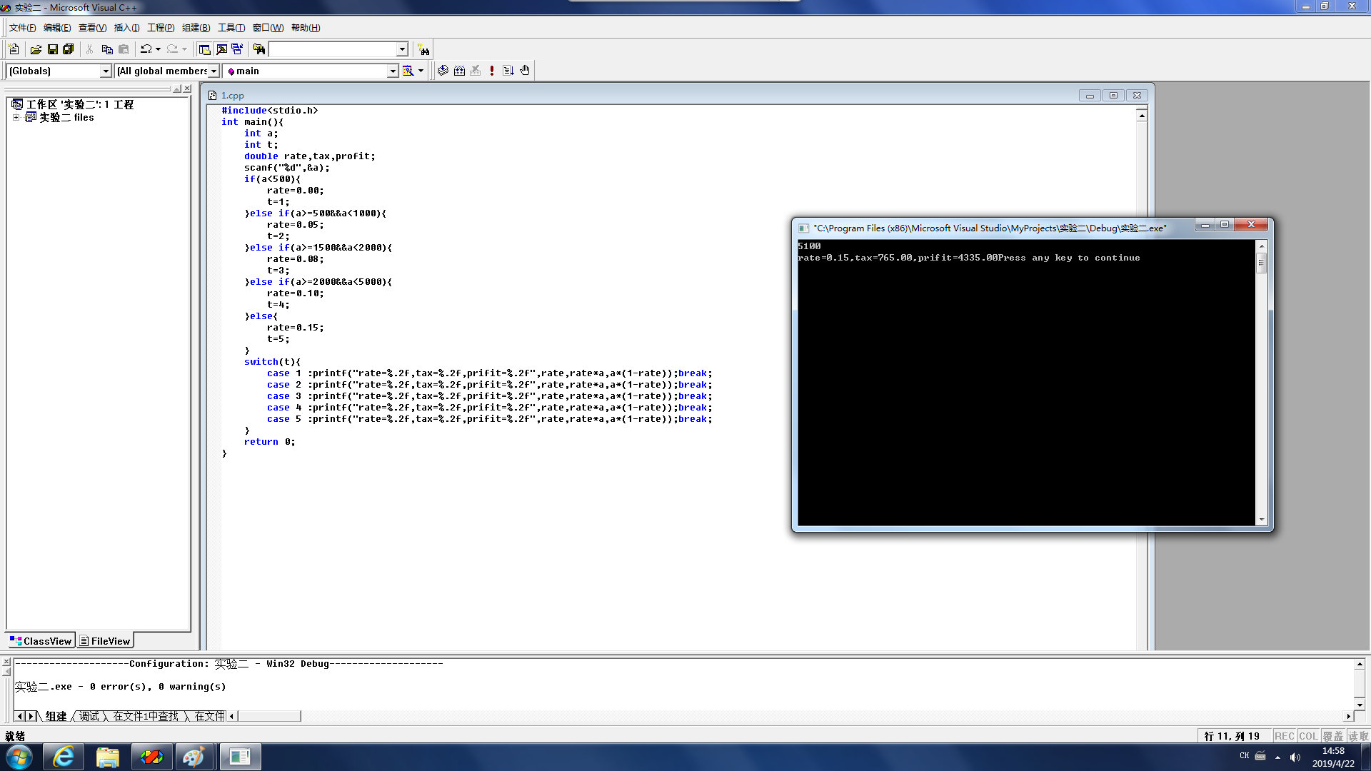 case 4 :printf("rate=%.2f,tax=%.2f,prifit=%.2f",rate,rate*a,a*(1-rate));break;