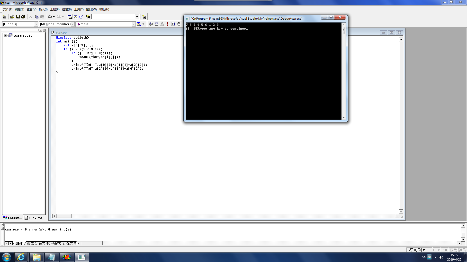 printf("%d ",a[0][0]+a[1][1]+a[2][2]);