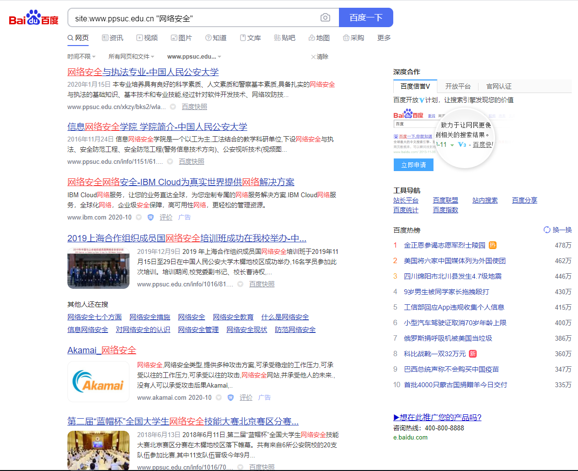 用百度或google搜索www.ppsuc.edu.cn中所有包含“网络安全”的网页。(附截图)