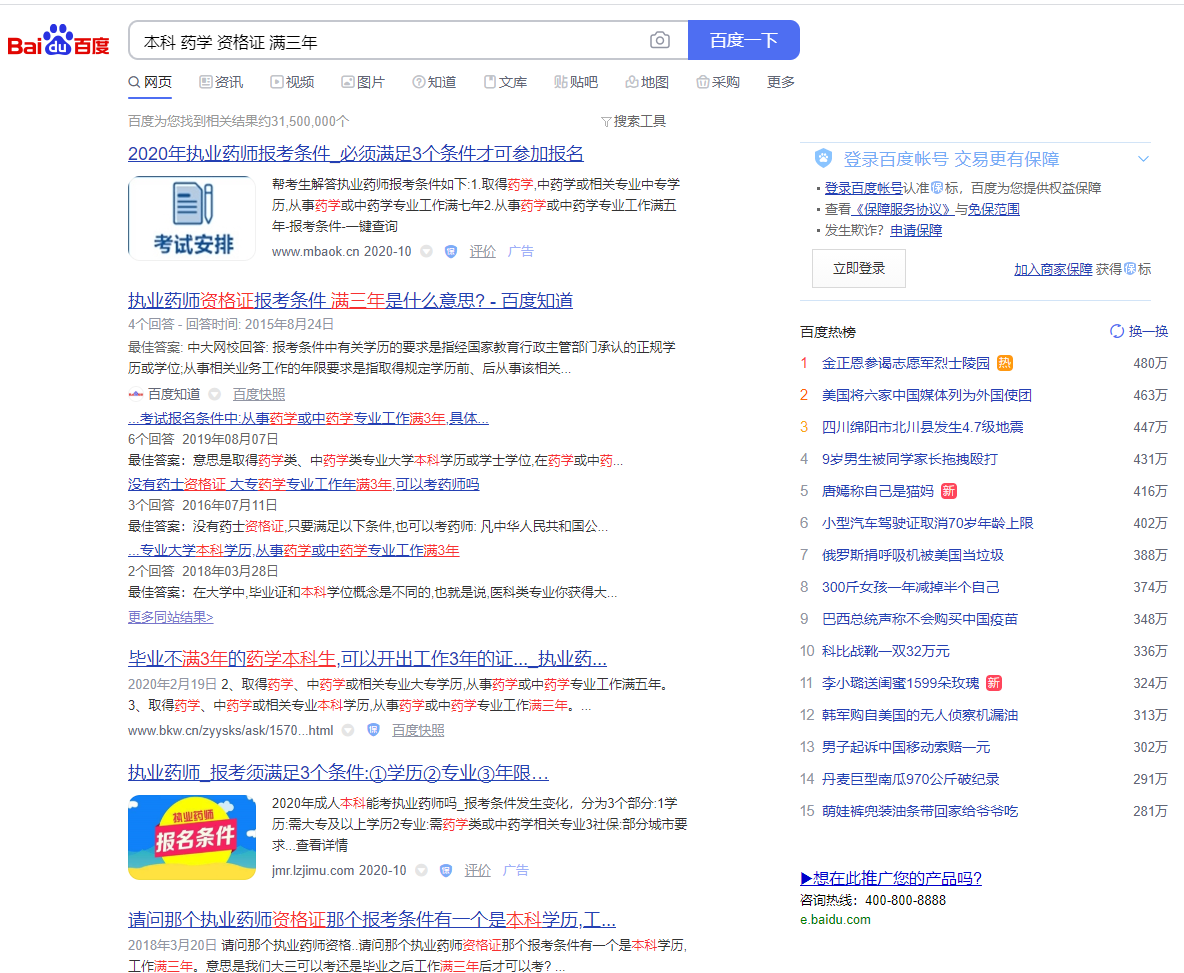 小丽是药学专业的一名本科生,现已从事药学专业的工作,目前她想考取一个资格证,但是报名条件中要求其工作满三年。那么,小丽想考取的是什么证。(请回答并附截图证明。)