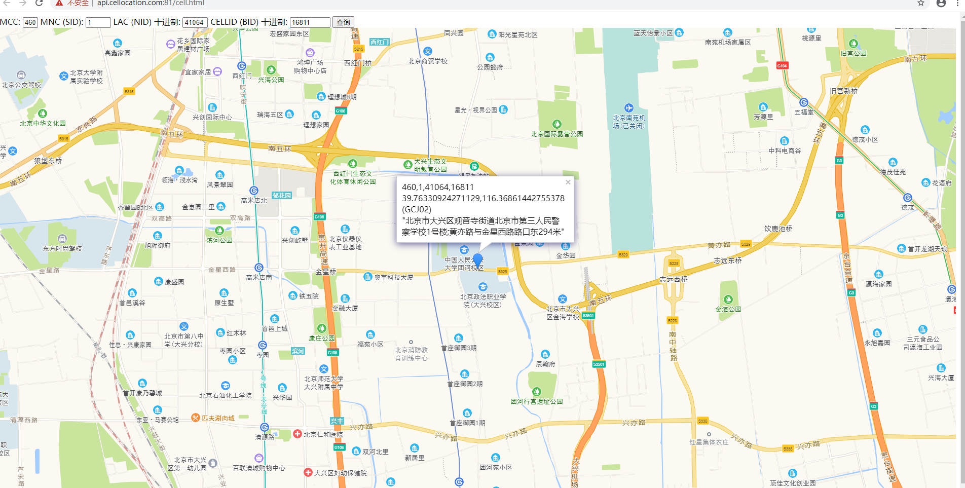 在一个案件中,获取了犯罪嫌疑人的LAC是41064,CID是16811,这个人可能在什么地方?(附截图)