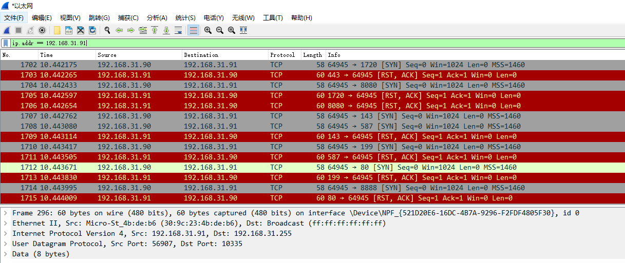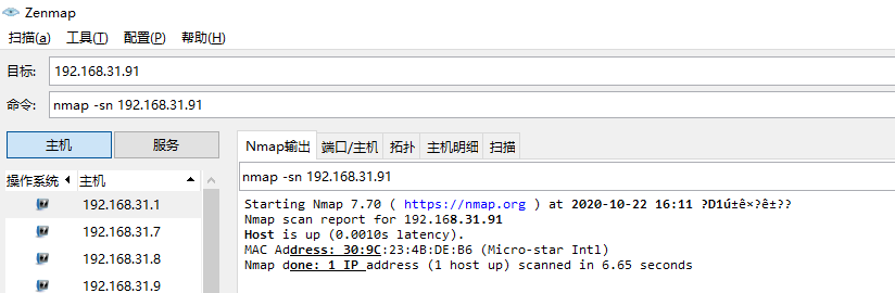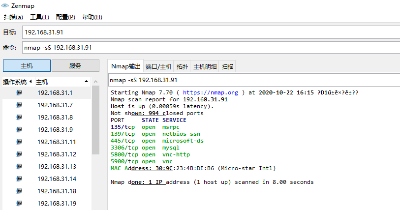 用命令nmap -sS 192.168.31.91