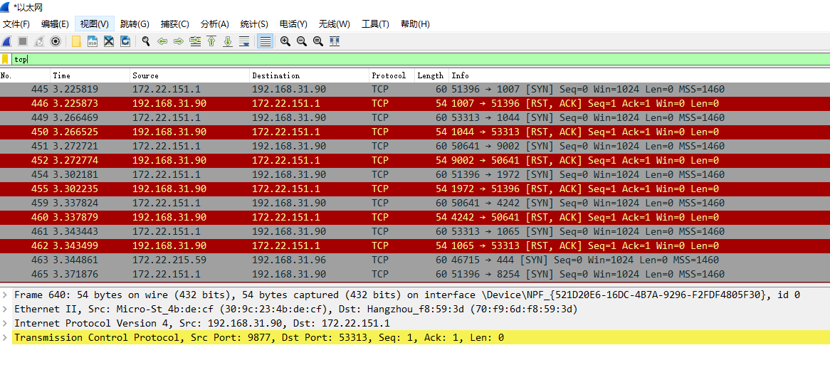 熟悉nmap相关命令,通过抓包,分析全连接和半连接扫描数据包的特征(附截图)