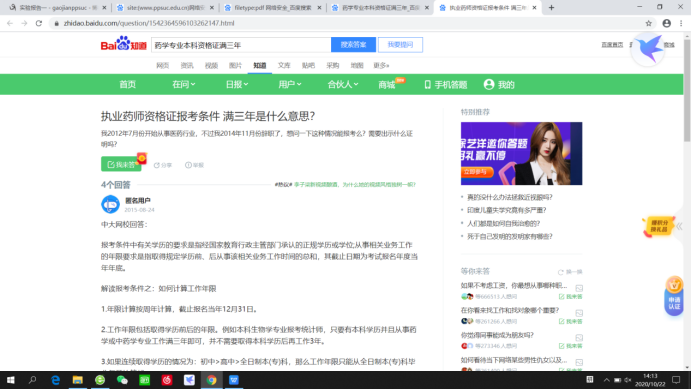 小丽是药学专业的一名本科生,现已从事药学专业的工作,目前她想考取一个资格证,但是报名条件中要求其工作满三年。那么,小丽想考取的是什么证。(请回答并附截图证明。)